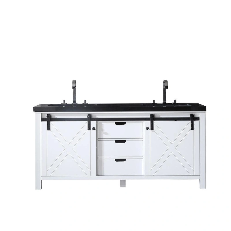 Eviva Dallas 72" Double Bath Vanity The Eviva Dallas 72-inch Double Bath Vanity combines a sleek modern aesthetic with rustic charm, featuring an Absolute Black Granite top and distinctive barn-style cabinet doors. Carefully crafted from solid rubber and b