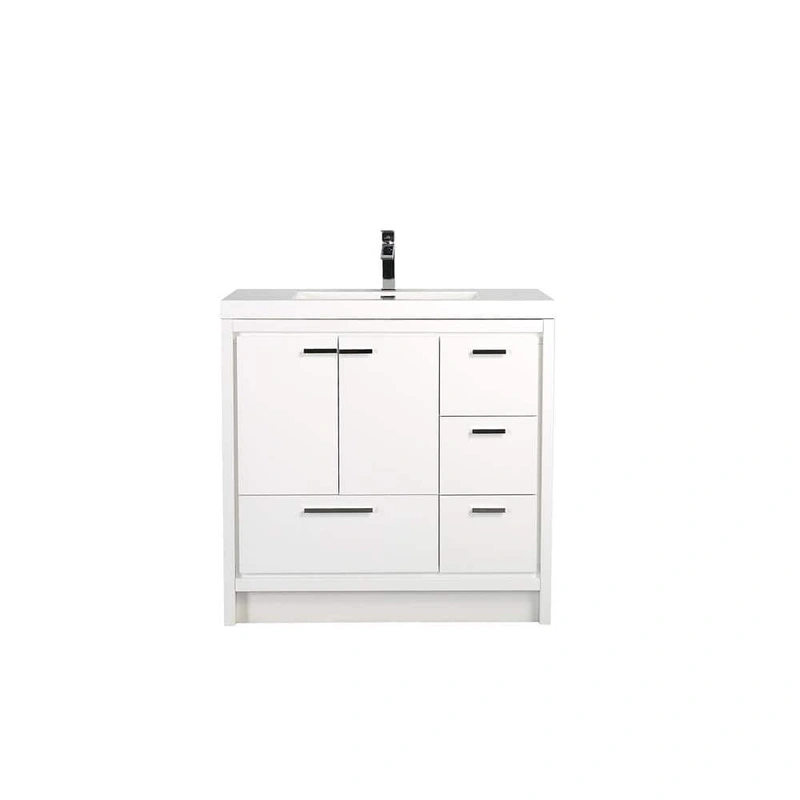 The Eviva Grace Bathroom Vanity offers the perfect blend of practicality and elegance with its white acrylic top and subtle chrome accents. Designed to meet the demands of modern styling, this vanity provides spacious storage and a durable water-resistant finish, making it an ideal choice for both professional contractors and DIY enthusiasts.