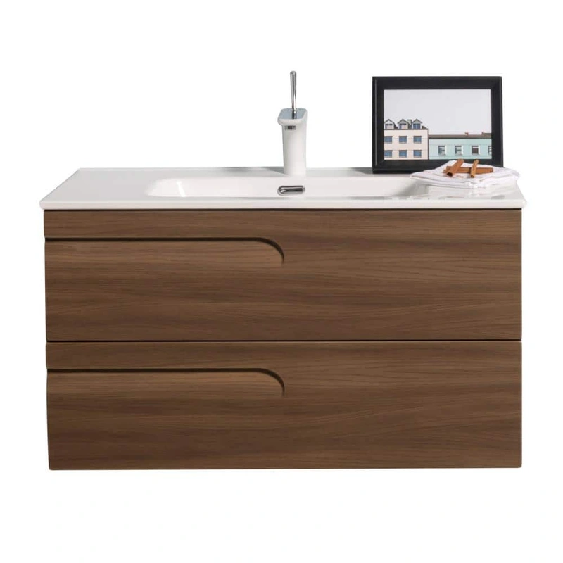 Eviva Joy 36" Floating Bathroom Vanity The Eviva Joy 36" Floating Bathroom Vanity in Graywood is the epitome of modern elegance, skillfully combining style with functionality. This wall-mounted vanity, featuring a sleek white porcelain top with an integrat