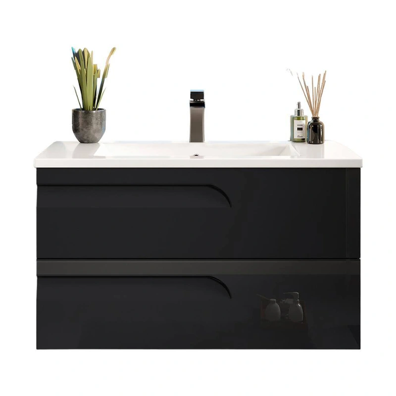 Eviva Joyous Floating Vanity Elevate your bathrooms aesthetics with the Eviva Joyous Floating Vanity. This 39-inch modern European-crafted vanity features a sleek black base with a pristine white porcelain top, blending sophisticated design with practical