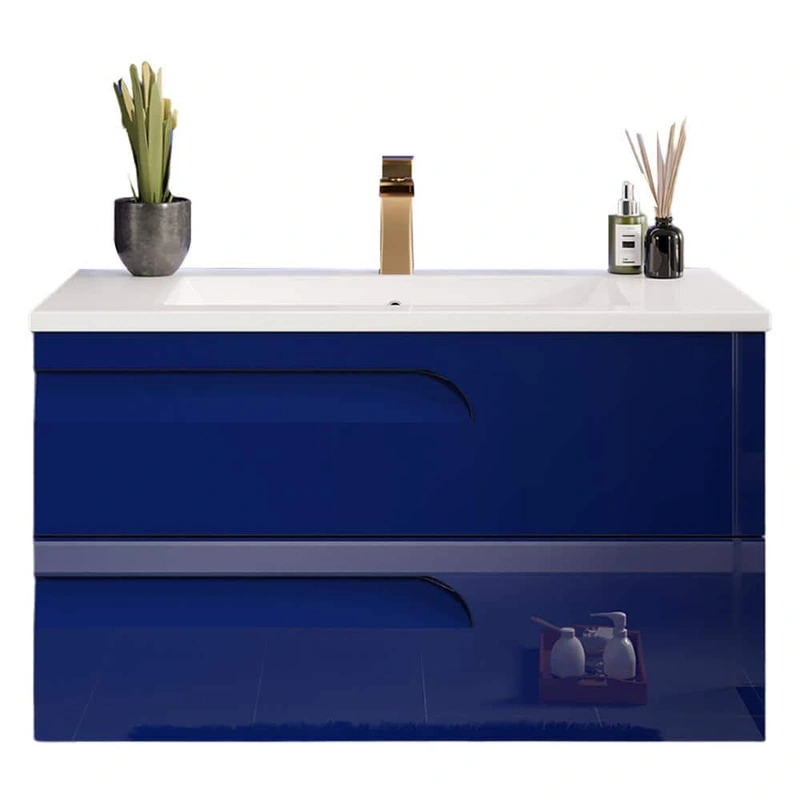Eviva Joyous 39" Floating Bath Vanity Upgrade your bathroom with the Eviva Joyous 39" Floating Vanity, featuring a stunning blue finish and a sleek white porcelain top. Crafted in Spain from the highest quality engineered wood, this modern wall-mounted van