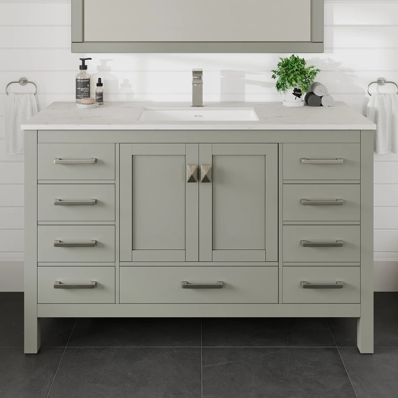 Eviva London 54-in Gray Undermount Single Sink Bathroom Vanity with White Quartz TopElevate the look of your bathroom with the Eviva London 54-inch Gray Undermount Single Sink Bathroom Vanity, a perfect blend of modern style and practical functionality. Th