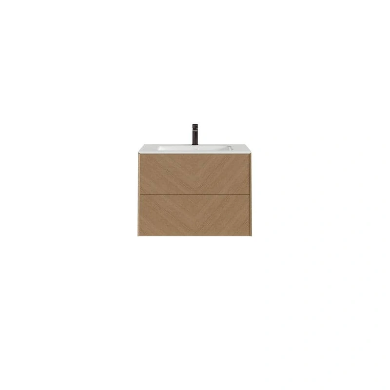 Eviva Lotus 24" Oak Wall-Mount Vanity Elevate your bathroom's elegance with the Eviva Lotus 24" Oak Wall-Mount Vanity, featuring a sleek handle-free design and integrated white solid surface sink. Crafted for both luxury and simplicity, this vanity promise