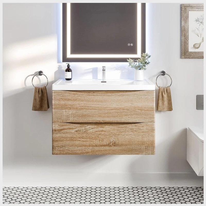 Smile 36" White Oak Wall-Mounted Vanity The Eviva Smile wall-mounted bathroom vanity combines sleek, modern design with practicality. Boasting an integrated white acrylic sink and soft-closing drawers, this vanity is not only elegant but functional, offeri