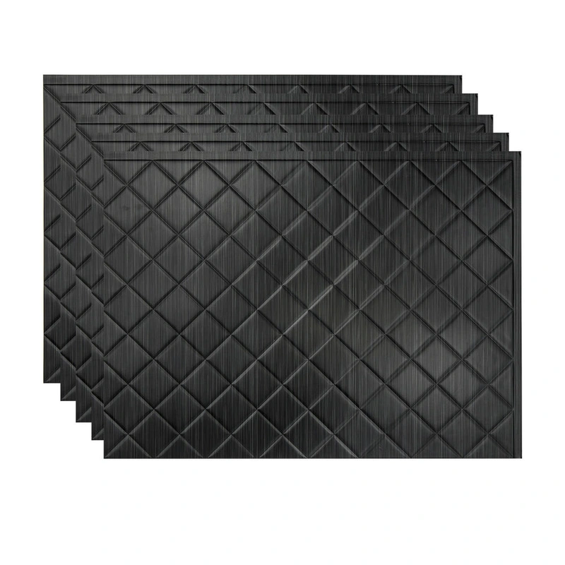Fasade Quilted Vinyl Backsplash - 5 Pack Transform your space with Fasade Quilted Vinyl Backsplash Tiles in Brushed Onyx. These easy-to-install panels offer a luxurious finish that withstands high temperatures, making them ideal for kitchens and bathrooms.