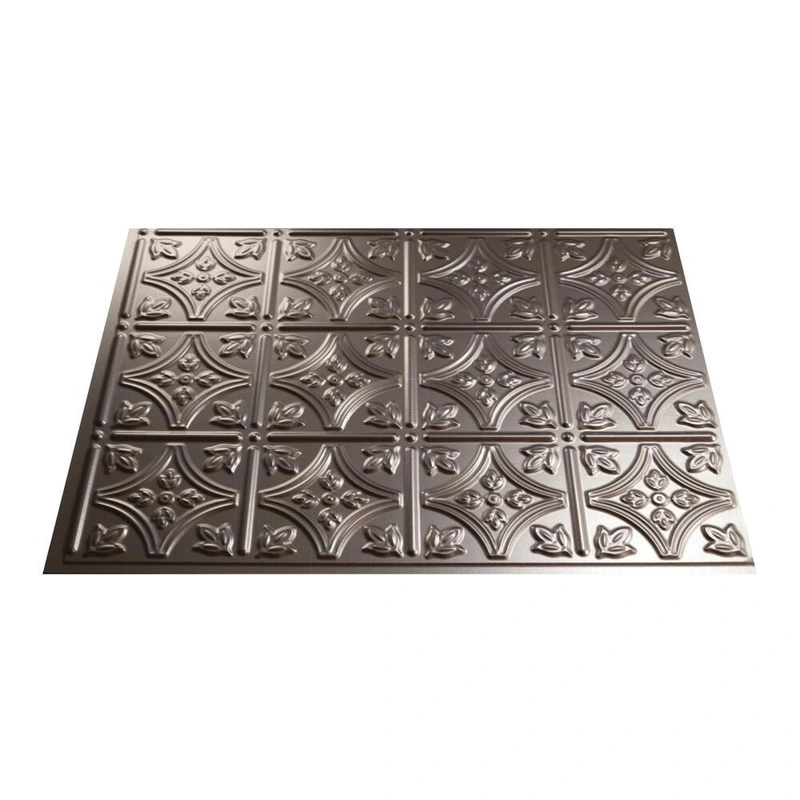 Brushed Nickel Vinyl Backsplash Tile Elevate your kitchen or bathroom dcor with the Fasade Traditional 1 Backsplash Tile in brushed nickel. This 18" x 24" vinyl tile offers the classic elegance of tin with the convenience of modern materials, making it eas