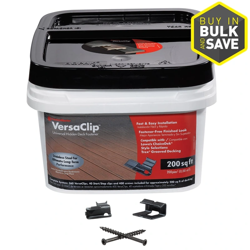 VersaClip Black Hidden Deck Fastener Create a seamless, fastener-free deck aesthetic with the FastenMaster VersaClip Hidden Deck Fastener. Designed for durability and ease, this system includes everything you need for secure installation on grooved decking