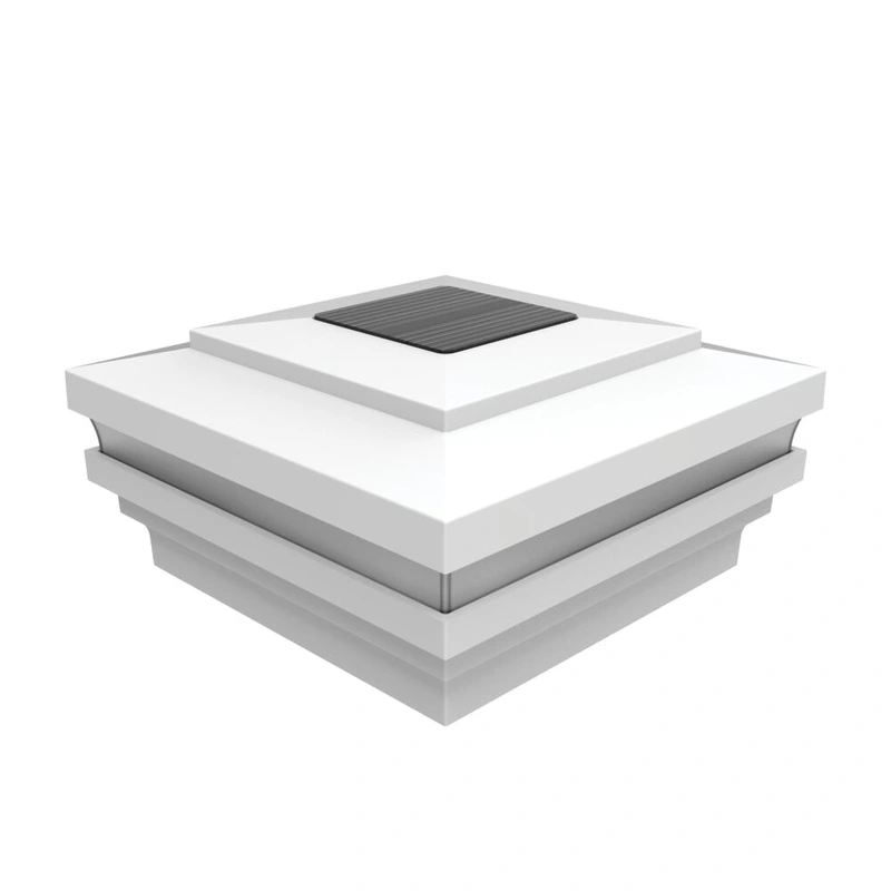 Solar-Powered White Nylon Deck Post Cap Elevate your outdoor railing with the Freedom Solar-Powered Deck Post Cap. Crafted from durable white nylon, this post cap seamlessly fits 4.25-inch aluminum posts, adding glowing elegance to your deck or porch. Harn