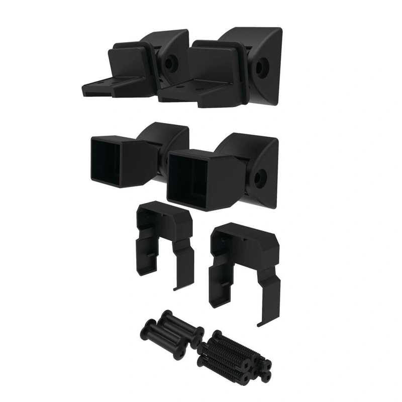A: The kit includes 2 top brackets, 2 bottom brackets, and all necessary screws for installation.