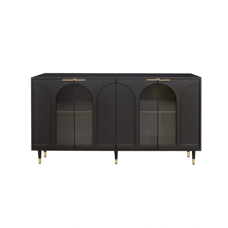 Embrace the chic allure of the FUNKOL Black Lacquered Kitchen Cabineta true masterpiece of form and function. Its matte black finish and fluted glass doors transform mundane storage into a captivating focal point. Imagine it styled as an elegant bar in your dining space, adorned with fine glassware and polished dcor accents. This piece seamlessly bridges practicality with refined design, essential for the modern, luxurious lifestyle.