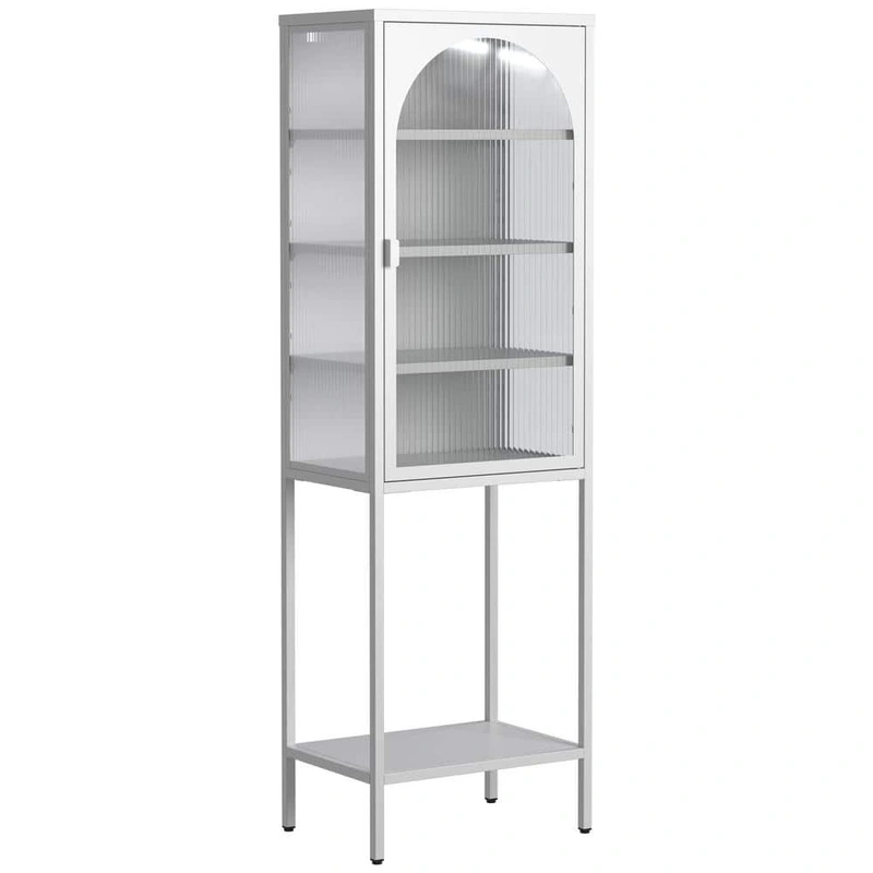 FUNKOL White Metal 5-Shelf Storage Cabinet Maximize your storage with the sleek, modern FUNKOL White Metal Storage Cabinet, featuring five versatile shelves, adjustable dividers, and a sophisticated glass door design. Perfect for any room in your home or o
