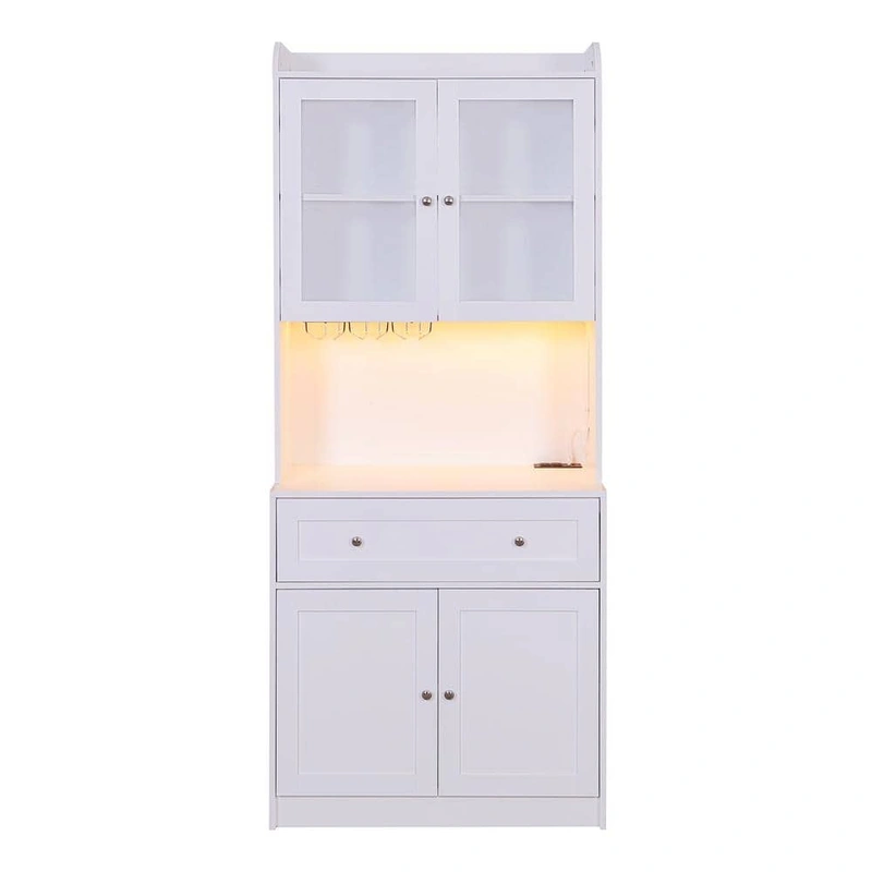 Transform your kitchen space with the elegance of the FUNKOL Classic White MDF Kitchen Cabinet. Its crisp white finish coupled with glass doors elevates any room, while the ambient LED lighting adds a sophisticated glow to your glassware display. Thoughtfully designed with clever functionalities like microwave space and USB charging ports, it serves as both a stylistic and utilitarian centerpiece. Ideal for the discerning homeowner, this cabinet harmonizes essential storage with designer flair, making it a must-have in any luxury kitchen setup.