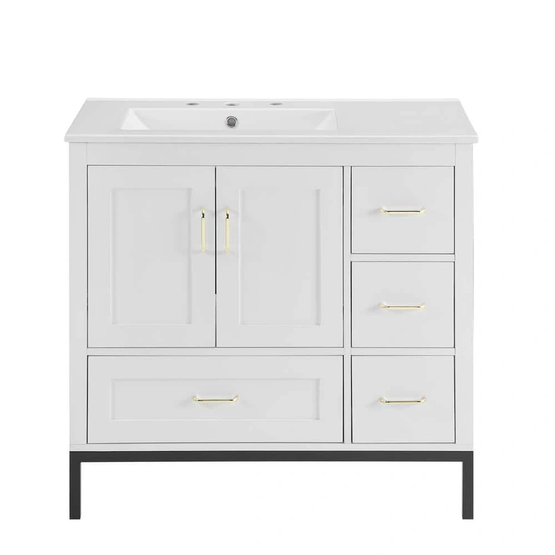 FUNKOL 36" White MDF Bathroom Vanity Cabinet The FUNKOL 36" White MDF Bathroom Vanity Cabinet stands as a stylish and practical addition to any bathroom space. Crafted with durable MDF and treated to be waterproof and moisture-resistant, this vanity offers