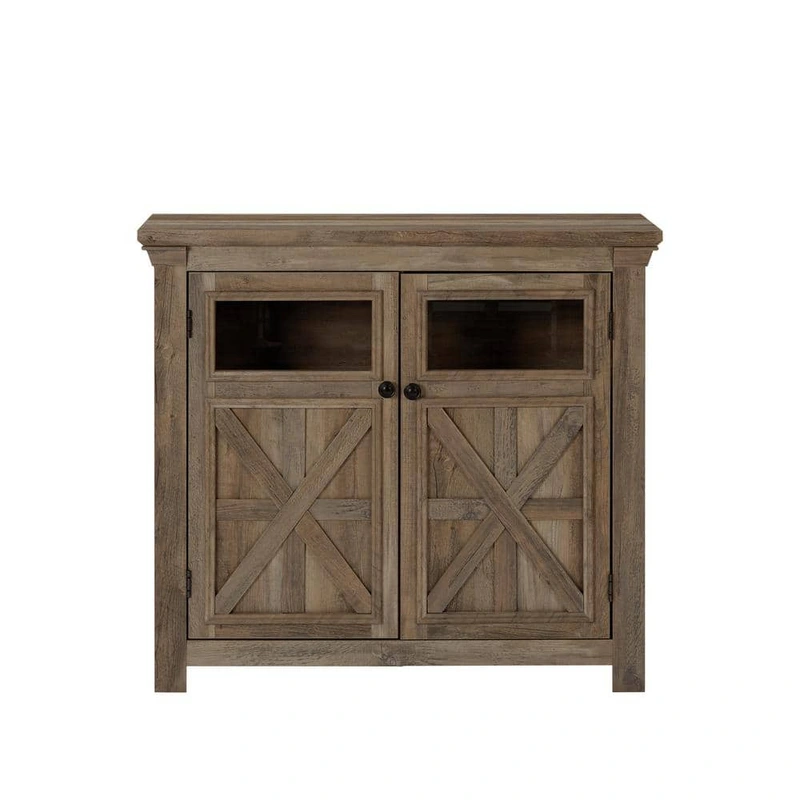 Enhance your home’s aesthetic with the FUNKOL Vintage Gray Wash MDF Storage Cabinet. Its timeless design features classic cross patterns and black metal handles, offering both style and function with ample storage space through adjustable shelves and removable compartments.
