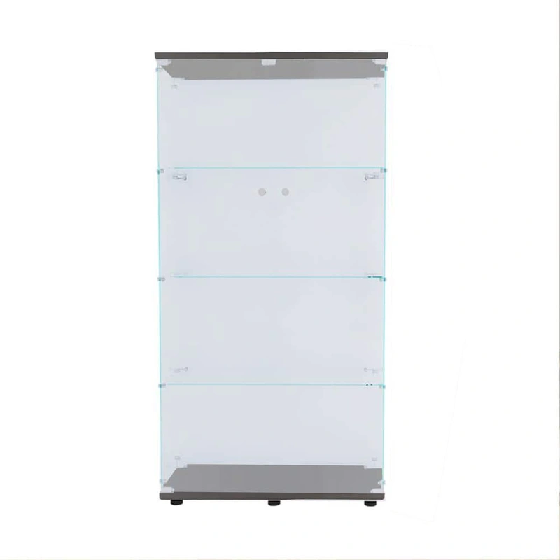 Black 4-Shelf Display Cabinet with Glass Doors Featuring a sleek black finish and a minimalist frameless design, the FUNKOL Display Cabinet is the perfect solution for showcasing your collectibles and decor. With tempered glass panels and sturdy wood const