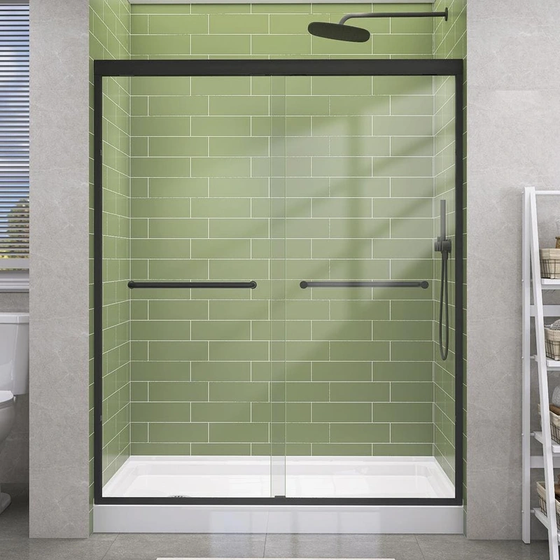Matte Black Sliding Shower Door with Clear Glass Upgrade your bathroom with the Getpro Double Sliding Framed Shower Door, designed with sleek matte black frames and 1/4 in. thick ANSI-certified clear glass. Delivering both elegance and functionality, this