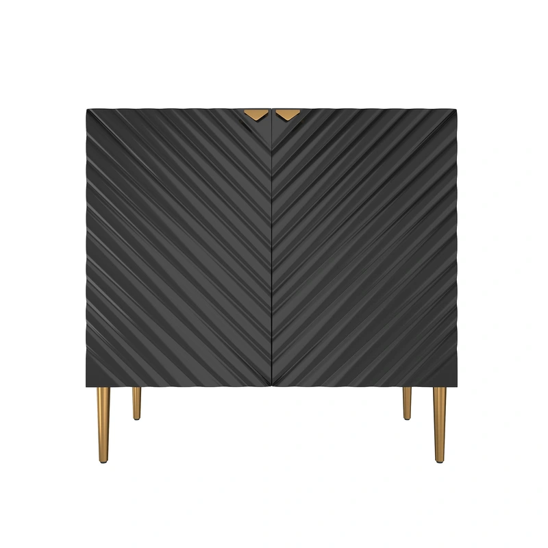 The GZMR Freestanding Utility Storage Cabinet offers stylish functionality with its V-shaped pattern and sleek black finish. Perfect for contemporary interiors, this cabinet provides generous storage space, supported by durable brass-coated legs, making it an ideal choice for any room needing organization with an aesthetic uplift.