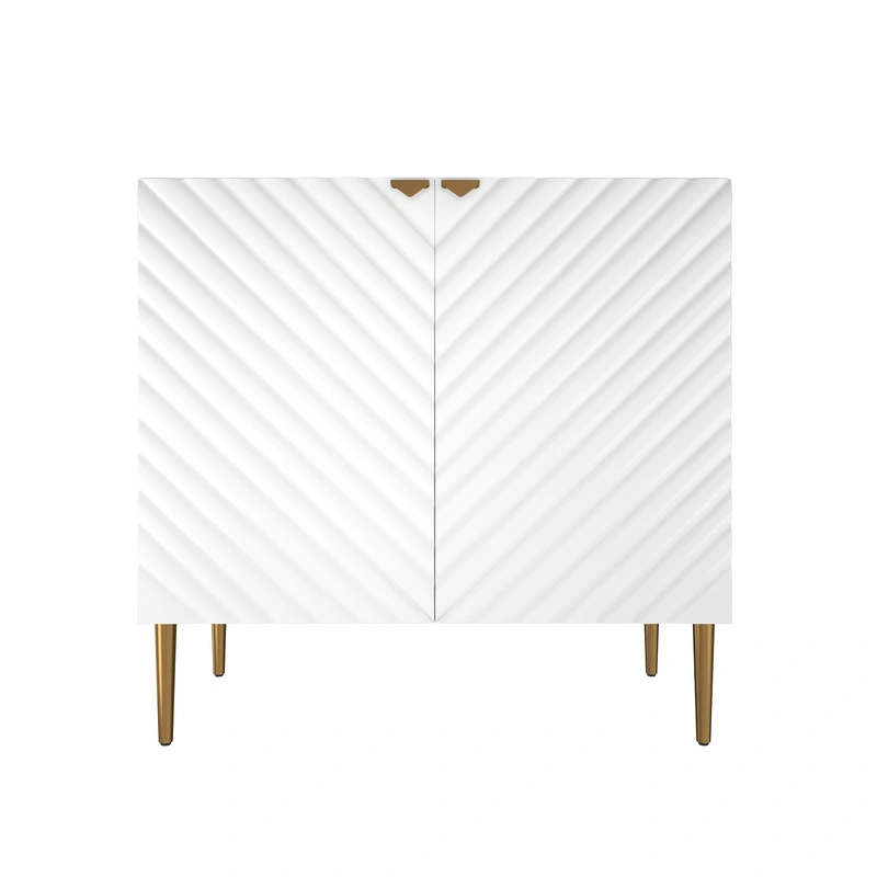 GZMR White Freestanding Utility Storage Cabinet Upgrade your home's storage with the GZMR White Freestanding Utility Storage Cabinet. Featuring a sleek V-shaped door pattern, this MDF cabinet balances elegance and functionality, supported by brass-finished