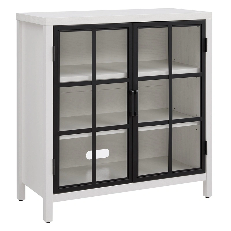 Bennett 2-Shelf Crittall Office Cabinet Elevate your home office or living space with the Bennett 2-Shelf Office Cabinet. This modern contemporary cabinet unites sturdy construction with stylish aesthetics, featuring Crittall-style paned doors in a classic