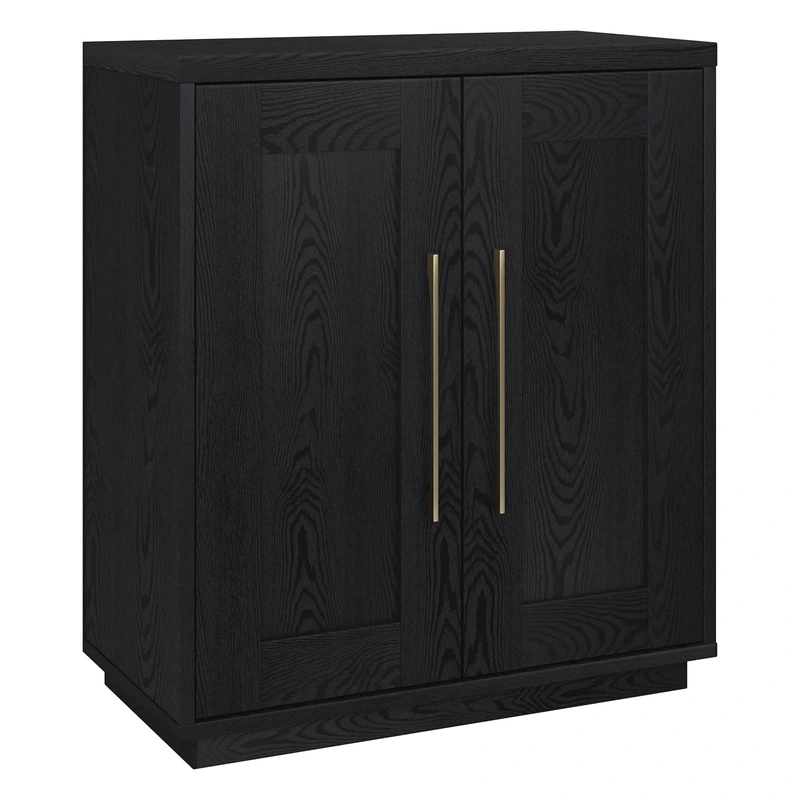 The Tillman Black Grain 2-Shelf Office Cabinet offers a modern storage solution for professionals and home organizers alike. Its solid MDF construction and sleek black grain finish combine durability with contemporary style, featuring swing-out doors with an adjustable shelf for customized storage.
