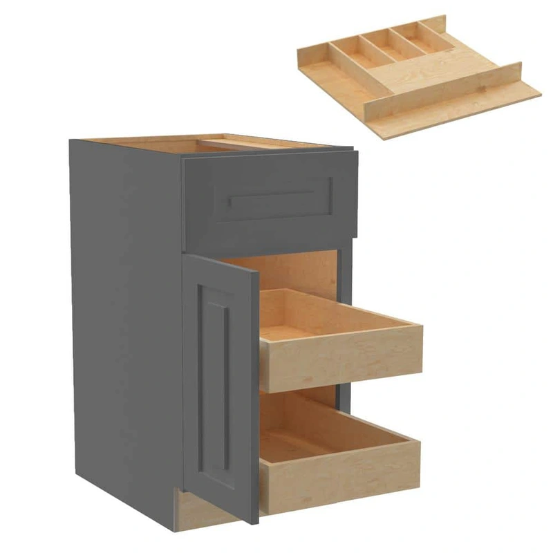 The Home Decorators Collection Grayson Kitchen Cabinet combines elegance and practicality, offering a deep onyx finish that suits any modern kitchen style. This framed cabinet provides a sophisticated storage solution, featuring soft-close doors and drawers along with a built-in cutlery tray for added convenience. Crafted from durable plywood and MDF materials, this cabinet promises long-lasting performance and style.