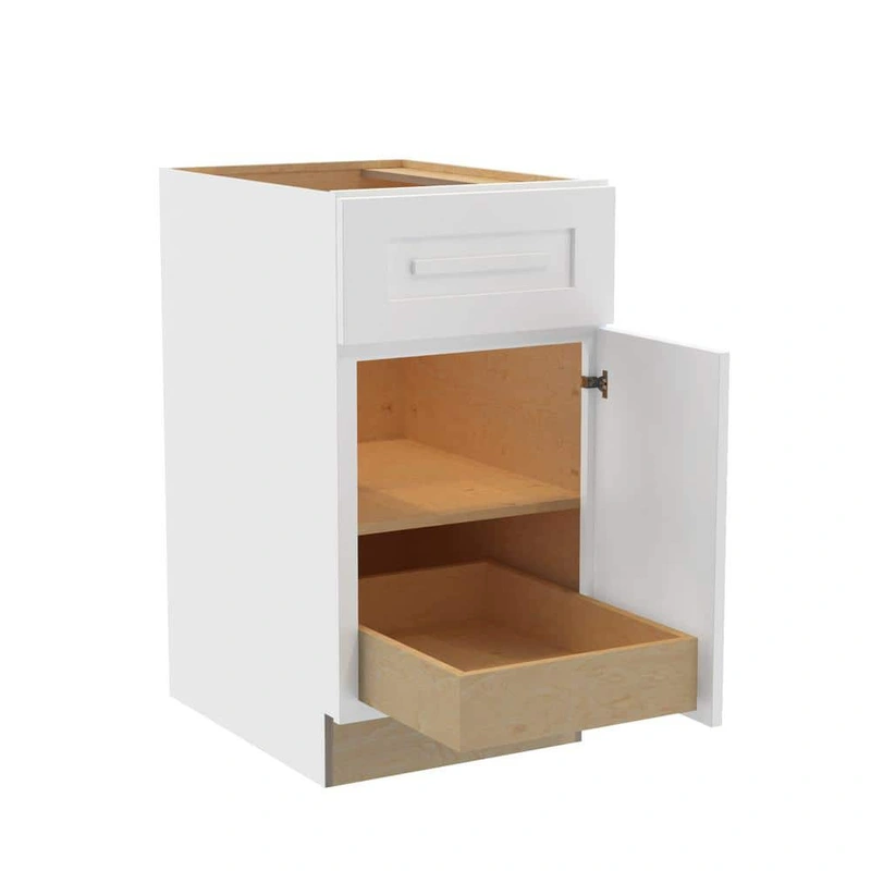 Elevate your kitchen with the Grayson Base Kitchen Cabinet from Home Decorators Collection. This stunning piece features a bright Pacific White finish and a premium plywood construction for exceptional durability. Soft close doors and drawers enhance functionality, making this cabinet a seamless addition to any modern kitchen.