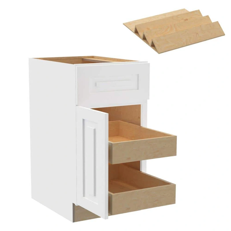 Grayson Pacific White Kitchen Cabinet with Spice Tray The Grayson Kitchen Cabinet by Home Decorators Collection offers an elegant Pacific White finish with a modern raised panel shaker style. Crafted from CARB compliant all-plywood, this cabinet provides f