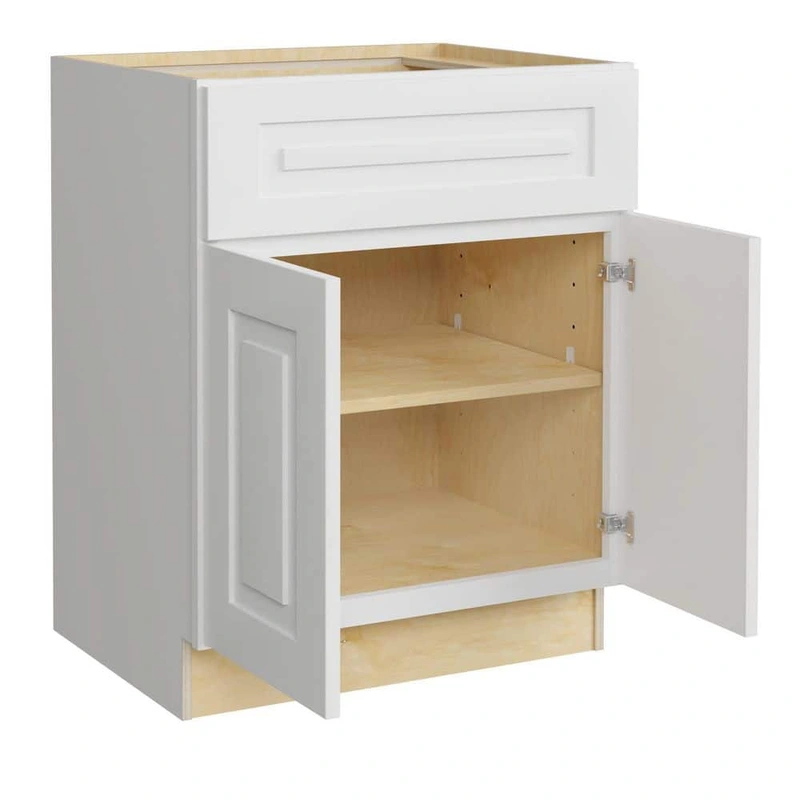 Grayson Pacific White Plywood Base Kitchen Cabinet Elevate your kitchen with the Grayson Pacific White Cabinet from Home Decorators Collection, designed with a modern raised panel shaker style. This sturdy cabinet offers premium all-plywood construction an