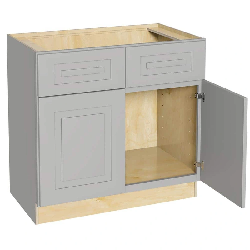 Transform your bathroom into a refined sanctuary with the Grayson Sink Base Cabinet. Its luxurious pearl gray hue exudes quiet sophistication, blending seamlessly into both modern and traditional settings. The standout feature here is its intricate shaker-style door, offering the perfect canvas for a chic oasis. Style it with delicate brass fixtures and a vintage-inspired mirror to bring understated glamour to life. This cabinet truly embodies the art of effortless luxury, making it an essential element for an upscale bath ambiance.
