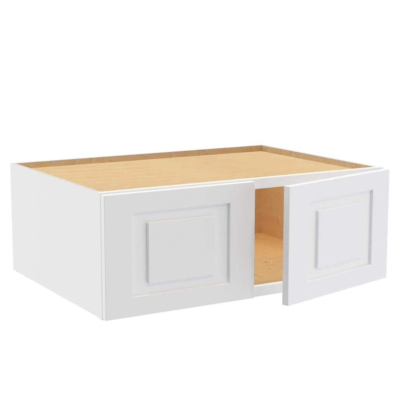Upgrade your kitchen with the Grayson Assembled Plywood Wall Bridge Kitchen Cabinet in Pacific White. Its sophisticated design features soft close doors and a sturdy plywood construction, ensuring both elegance and durability in your kitchen space.