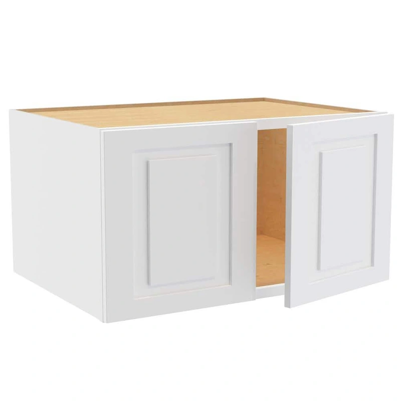 Upgrade your kitchen with the Grayson 33-Inch Wall Bridge Kitchen Cabinet from Home Decorators Collection. Featuring a sleek Pacific White finish and durable all-plywood construction, this cabinet combines elegant design with robust functionality. Soft close doors and bi-parting design add to its contemporary appeal, making it a perfect addition for modern kitchens.