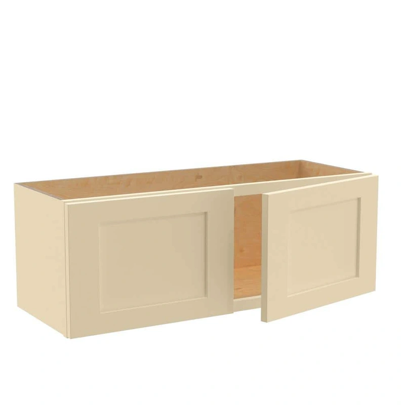 Soft Close Blended Cream Wall Cabinet Elevate your kitchen with the Newport 33 in. Wall Bridge Cabinet in Blended Cream. Built with durable plywood construction for strength, this cabinet features Shaker-style MDF doors and a soothing cream finish. Soft cl