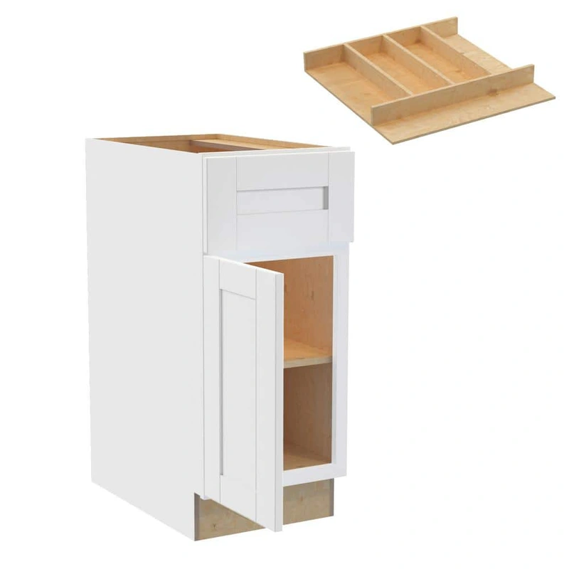 Elevate your kitchen with the Washington Vesper White Shaker Base Cabinet from Home Decorators Collection. Embodying timeless shaker design with modern functionality, it features soft-close doors and a utility tray for seamless organization. Constructed with durable CARB II compliant plywood, this cabinet promises both style and substance.
