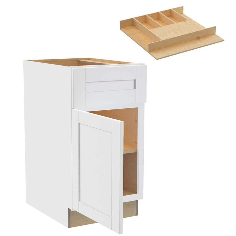 Home Decorators Collection Washington 18 in. W x 24 in. D x 34.5 in. H Vesper White Plywood Shaker Assembled Base Kitchen Cabinet Left Cutlery Tray
