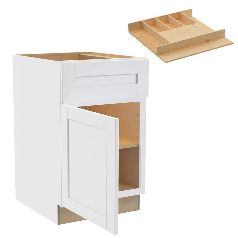 Upgrade your kitchen with the Home Decorators Collection Washington Vesper White Shaker Base Kitchen Cabinet. Crafted from high-quality plywood with a durable white vinyl finish, this cabinet combines style and functionality. Its soft-close doors and drawers, along with full-depth adjustable shelves, make it a smart, durable choice for any home project.