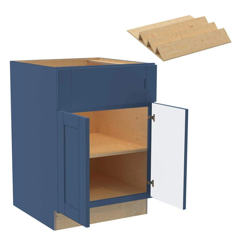 Shaker Blue Assembled Base Kitchen Cabinet The Home Decorators Collection Washington Base Kitchen Cabinet combines style and strength with its vessel blue plywood construction and soft-close features. Designed with a shaker-style, this cabinet provides a s
