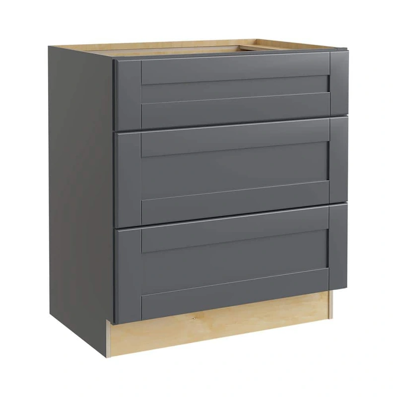 The Home Decorators Collection Washington kitchen cabinet features a striking Valiant Onyx finish, offering both style and practicality with its modern Rigid Thermofoil (RTF) surface. Built with plywood for enhanced durability, this cabinet comes fully assembled with soft-close doors and drawers, ready to bring elegance and efficiency to your kitchen.