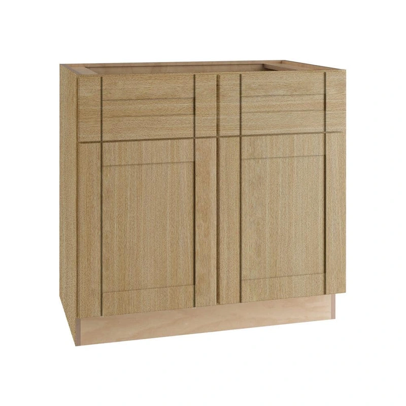 Oak Plywood Kitchen Sink Base Cabinet with Soft Close Doors The Home Decorators Collection's Washington sink base cabinet exudes timeless elegance with its classic shaker design and rich oak finish. This 36-inch cabinet features soft close doors, Plywood C