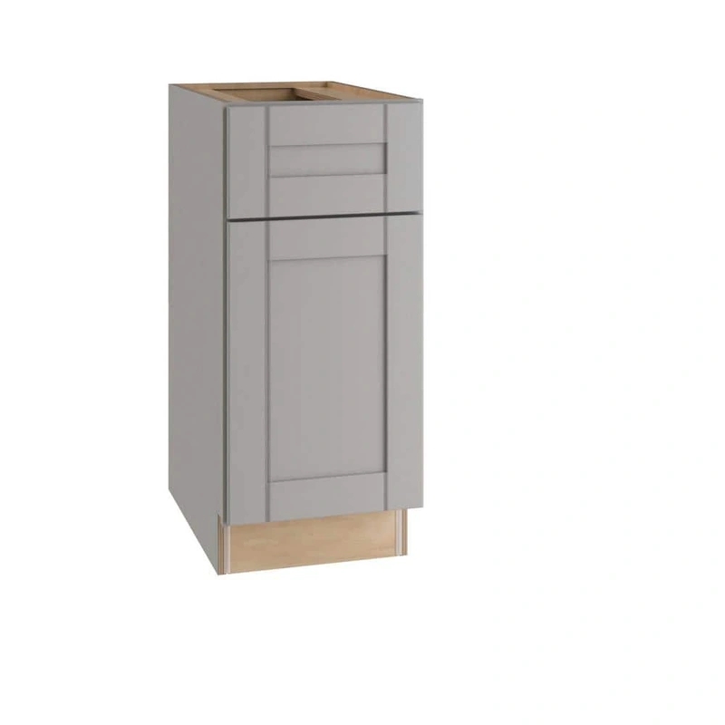 Veiled Gray 18'' Shaker Base Kitchen Cabinet Enhance your kitchen with the elegant and functional Washington Veiled Gray Kitchen Cabinet from Home Decorators Collection. This cabinet offers a soft-close drawer and robust plywood construction, ensuring dura