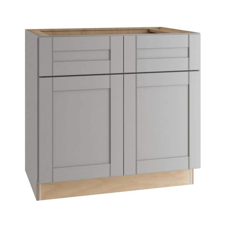 Veiled Gray Shaker Kitchen Cabinet The Home Decorators Collection Washington Veiled Gray Kitchen Cabinet offers a touch of sophistication with its Shaker-style design. Crafted with durable plywood construction, this cabinet features soft-close drawers and