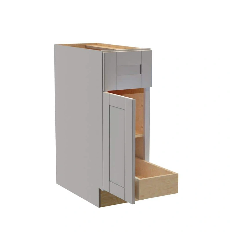 Upgrade your kitchen with the sophisticated Veiled Gray Plywood Shaker Base Cabinet and experience unparalleled style and convenience today.