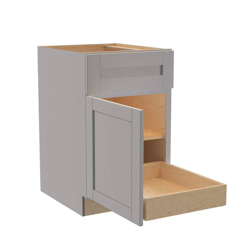 The Home Decorators Collection Veiled Gray Shaker-style Kitchen Cabinet offers both form and function, featuring durable CARB II compliant plywood construction and MDF shaker frame doors with a recessed center. Soft close technology ensures seamless operation, while its veiled gray finish and solid craftsmanship make it a sophisticated addition to any kitchen.