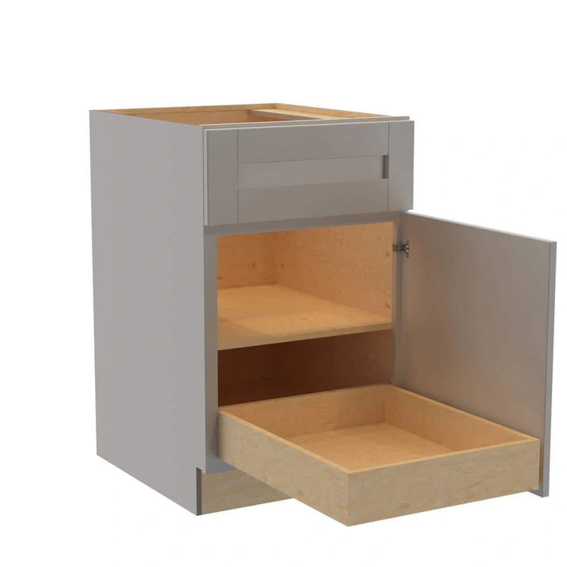 Washington Veiled Gray Shaker Base Kitchen Cabinet Elevate your kitchen with the Home Decorators Collection's Washington Veiled Gray Shaker Base Kitchen Cabinet. This durable, modern cabinet features soft close doors and a robust plywood construction, ensu