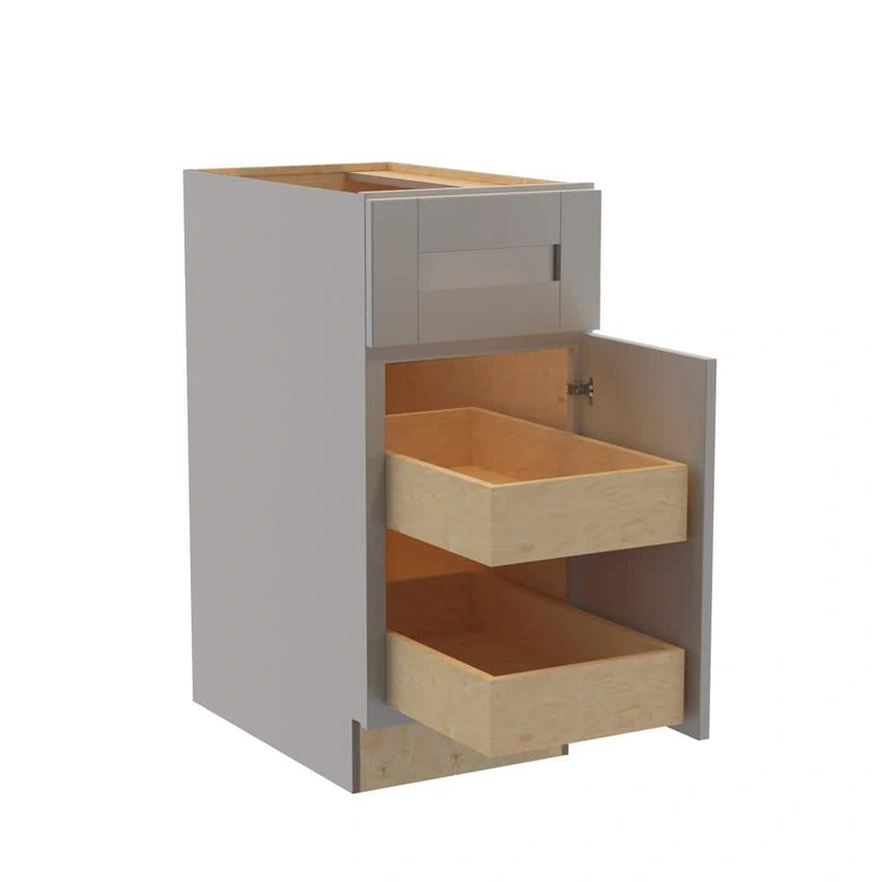 Transform your kitchen with the Home Decorators Collection’s Washington Veiled Gray Plywood Shaker Base Kitchen Cabinet. Its durable, easy-to-clean thermofoil finish and soft close technology ensure both elegance and functionality. Crafted with CARB II compliant plywood, this cabinet offers durability and a sleek, modern aesthetic for any kitchen.