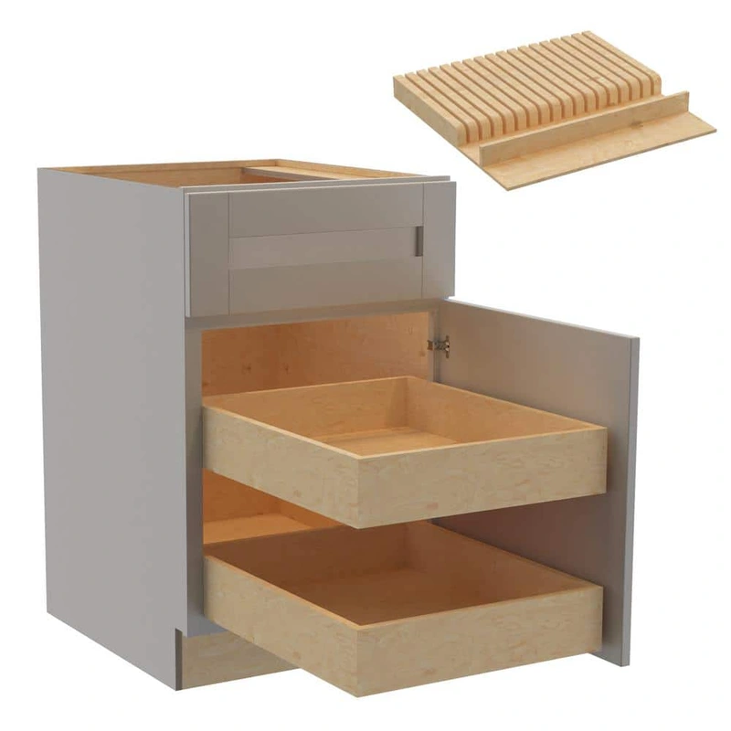 • Storage: Includes two soft close roll-out trays and one spice tray insert