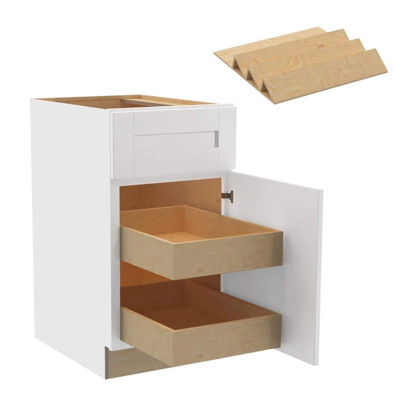 The Home Decorators Collection Washington Vesper White Shaker Base Kitchen Cabinet combines elegance with functionality, offering a light and airy design for any kitchen. Built from MDF with a durable, CARB II compliant plywood construction, it features soft close doors and drawers, ensuring a smooth and quiet operation. Its all-plywood design guarantees strength and longevity, making it an excellent choice for both professional contractors and DIY enthusiasts.