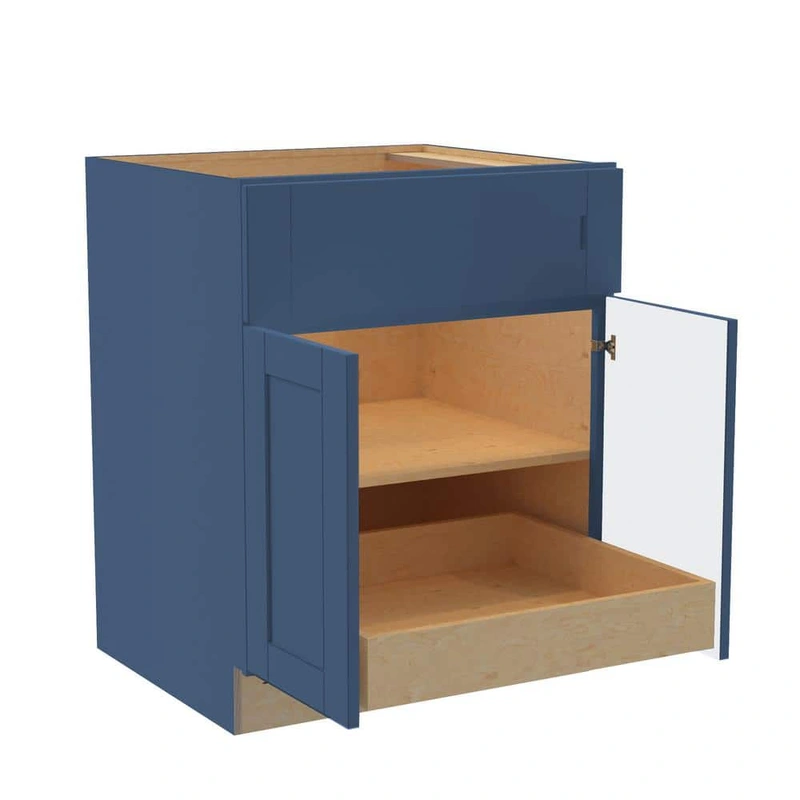 Vessel Blue Shaker Kitchen Cabinet Elevate your kitchen with the Washington Vessel Blue Shaker Assembled Base Kitchen Cabinet by Home Decorators Collection. This beautifully crafted cabinet features a striking deep blue finish and modern shaker-style doors
