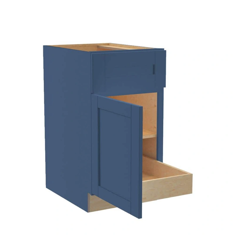 Washington Vessel Blue Shaker Base Kitchen Cabinet The Washington Vessel Blue Shaker Cabinet from Home Decorators Collection offers striking aesthetics with its deep blue hue and modern Shaker design. Constructed from CARB II compliant plywood, it features