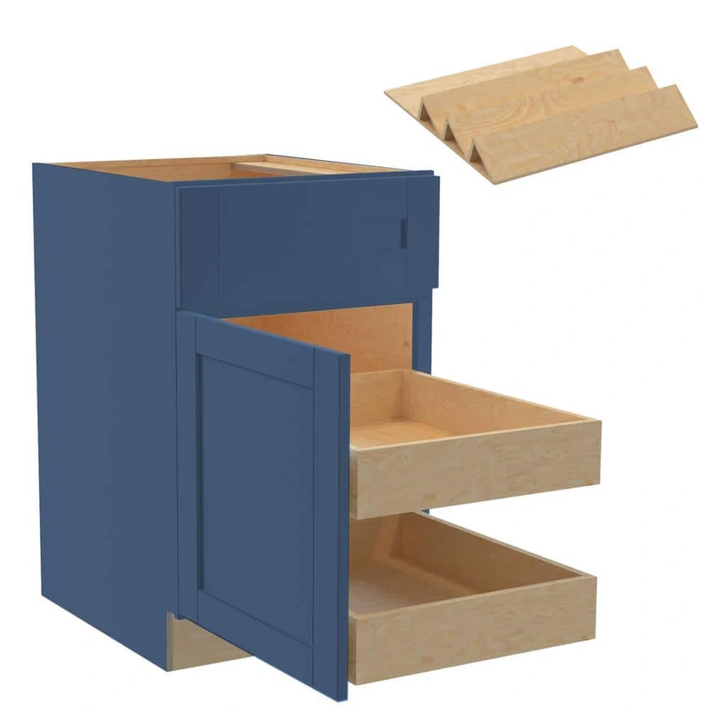 Washington Vessel Blue Shaker Kitchen Cabinet Enhance your kitchen's elegance with the Washington Vessel Blue Shaker Kitchen Cabinet from Home Decorators Collection. Featuring durable vinyl and plywood construction, this cabinet boasts soft close doors and