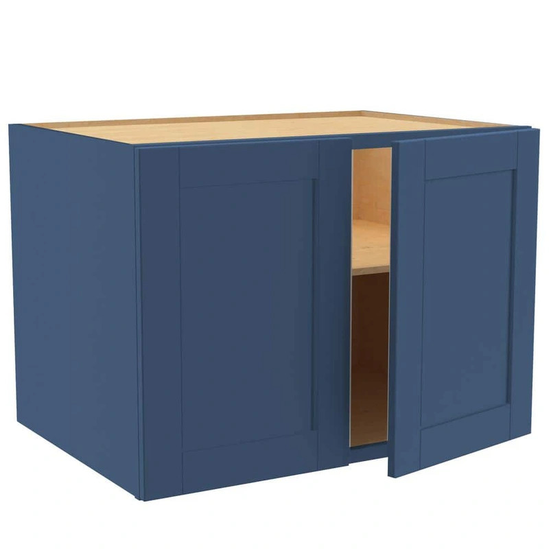 Washington Vessel Blue Shaker Wall Cabinet Elevate your kitchen with the Washington Vessel Blue Shaker Wall Cabinet from Home Decorators Collection, featuring a striking blue vinyl finish and durable plywood construction. Designed with soft close doors and